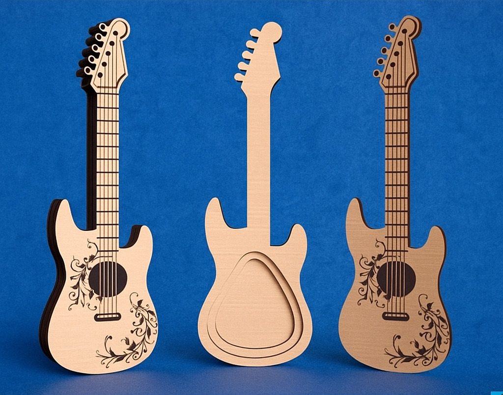 Ξύλινη θήκη για πένες σε σχήμα ηλεκτρική κιθάρα. Υλικό κατασκευής ξύλο.