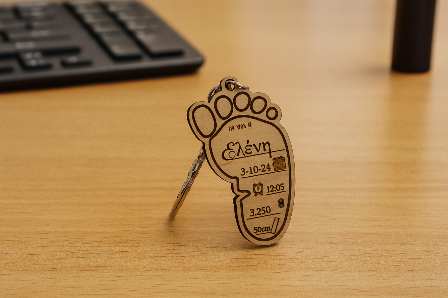 Αναμνηστικό πατουσάκι με τα στοιχειά του μωρού σας. Υλικό κατασκευής ξύλο.
