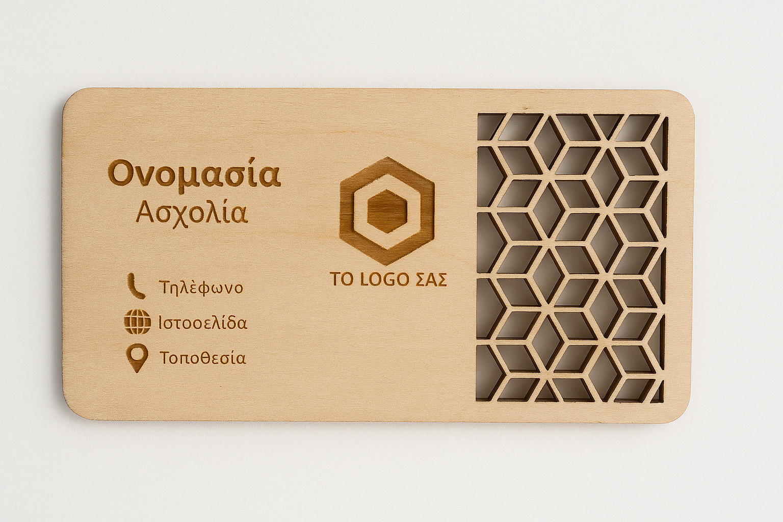 Επαγγελματική ξύλινη κάρτα, διαφημιστική με τα στοιχειά που επιθυμητέ. Υλικό κατασκευής ξύλο.