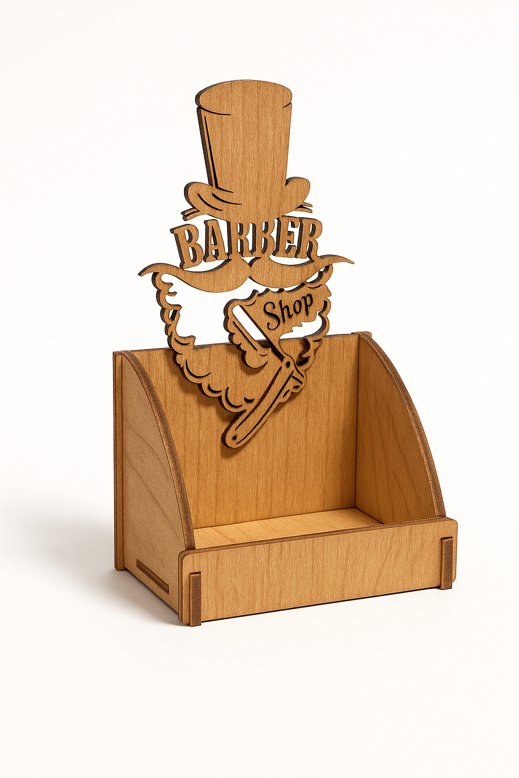 Βάση για επαγγελματικές κάρτες, ιδανικό για κομμωτήριο ανδρών. Υλικό κατασκευής ξύλο.