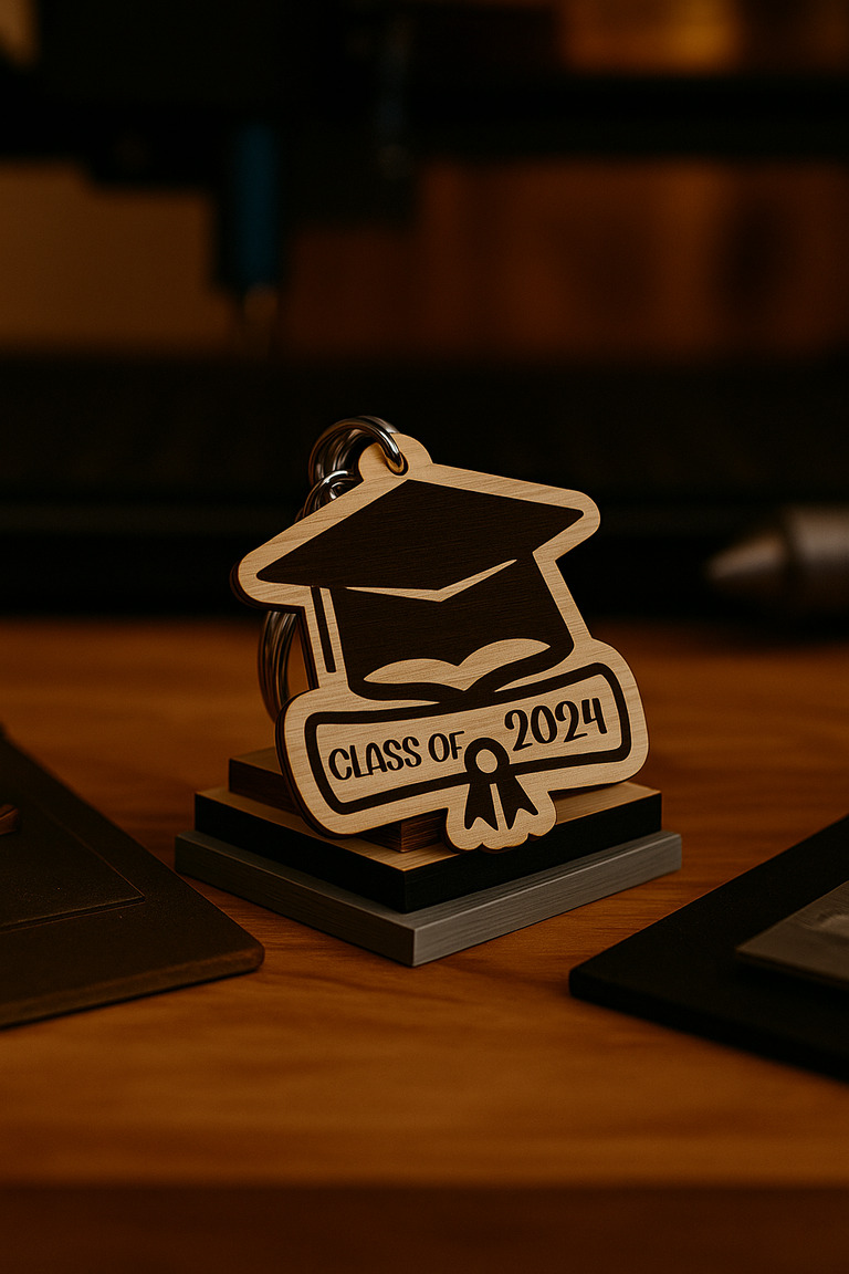 Ένα αναμνηστικό μπρελόκ για την αποφοίτηση, ιδανικό δώρο για τους αγαπημένους μας που τέλειωσαν τις σπουδές τους. Γίνεται χάραξη με το κείμενο που επιθυμητέ! Υλικό κατασκευής ξύλο.